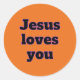 Jesus Loves You Orange Halloween Trick or Treat Classic Round Sticker