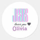 The perfect message for your new little one. Press the "Personalise It" to change to your child's name. It says "Jesus Loves You".