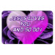 A purple flower and heart with saying " Jesus Loves You and So Do I" in the centre of the heart magnet.