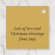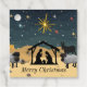 This gift tag features a beautiful arrangement of the biblical story of Jesus' birth includint the Star abovee the stable. The night sky is a deep blue covered in stars contrasting with a golden ground giving a blue gold aesthetic. Optional 'Merry Christmas' text and a template have been provided to add your message name and/or other text on the reverse.