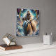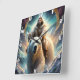 Christian Faith Jesus sits on a polar bear with white winter robe long hair and beard.Out in the snow ridding the white bear with staff in hand. Up in the ice glacier mountain. With snow and a bright stare in the night sky. On this artificial intelligence photo.