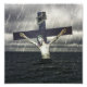 Digital photo collage technique religious concept illustration showing a sculpture of jesus christ on the cross drowning in the middle of sea.