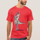 I give wanted to give this a 4 instead of a 5 because these Basic DARK T0shirts run unexpectedly SLIM or Narrow. Which is great if you do not have a potbelly, but I have a paunch. It isn't the shirt's fault that I've got a beer belly. The design and shirt itself is a quality cotton shirt. The color is more of a deep purple, but still a very pretty color. The Basic DARK T-shirts run a bit SLIMMER than the Basic Ts. The neck is a fraction narrower (or seems to be narrower) also. I'm a paunchy middle-aged woman and my neck is 12 inches (31cm) thick and the neckline fell about the same as in the photo of the man, and I had the desire to tug it a bit. So if you're a thick necked man or like loose shirts, be aware these are slimmer shirts. Once I get rid of my lockdown paunch it'll look great. The shirt washed well in cold water with no apparent bleeding. We don't have a dryer, so it hung dry. Did not shrink. Love the colors and the design. The design looks smaller on my shirt than it does on the model on-line. But still, it looks good on the shirt. The printing looks as it does on the model, just the size seems fractionally smaller. Washed garment in cold water, hung dry and design appeared unaffected.