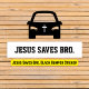 Modern, simple design. Jesus Saves Bro. Black and white design. #christianbumperstickers