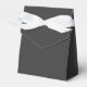 Dark, solid colour "Jet Black" Tent Favour Boxes with white ribbon. Jet Black is a very dark grey. Click on "Customise" to change colour or to add a pattern or design. Product Hex Code: #343434