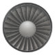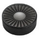 Front view of a modern jet turbine engine showing the fan blades and shiny silver engine cowling. Turbofan engines are commonly used on commercial jetliners for their high thrust and fuel efficiency, along with lower noise than turbojet engines.