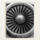 Front view of a modern jet turbine engine showing the fan blades and shiny silver engine cowling.