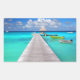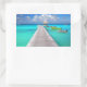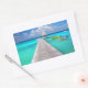 Jetty with boats in a tropical lagoon rectangular sticker
