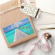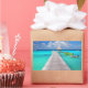 Rectangular photo sticker with a wooden jetty with some colourful boats and a thatched hut in the turquoise blue lagoon of the tropical, Pacific island Rangiroa, close to Tahiti and Bora Bora in French Polynesia.