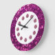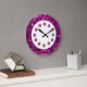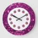 Pretty printed purple gemstone bling wall clock with pink rhinestone jewels printed on the clock face and gorgeous purple simulated glitter also printed on the clock in this decorative wall decor design for your kitchen, dining room, dorm room, or any room in your house you want to add some colour and character. Designed for ladies or teenage girls who like to make a splash with their decor.