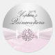 Quinceanera Sticker. Pink & silver with bow & jewels. Exclusive Zazzle. Customise with your own details. PLEASE NOTE all flat images! They Do NOT have real silver, bows, Diamonds or Jewels!!