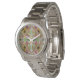 These dramatic watches add a touch of flair to life. This one is from an abstract in jewel colours with a romantic theme with an updated but old fashioned look in greens, pinks and golds. Counter clockwise numbers for people who are always short on time - or just for people who like to be a bit different!