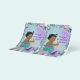 Mermaid baby shower gift bag decorations with adorable African American mermaid on a beautiful jewel background.These are DIY Small 5.25 x 3.25 x 8 inch Gift Bag Decorations that Print Two Per 8.5 x 11 Inch Sheet and Adhere to the Front of your Bag.