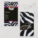 JEWEL OWL PINK BLACK WHITE ZEBRA FUR MONOGRAM BUSINESS CARD