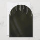 Evoke a moody summer night in the tropics, with jewels cascading off diamond-encrusted palm leaves or delete the jewel layers for a slightly more conservative look. This set features shimmering leaves and textured background in shades from light olive to dark seaweed green. The arch-shaped wedding invitation shown here has a corner border of sparkling leaves, and an elegant Serif font to add to the romance. Easily enter your wedding details using the provided template. View the collection link on this page to see all of the matching items in this beautiful set or search ID830 to see additional colour options for this design.