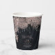 Opt for a striking, glitz and glam look by using the pieces in this wedding suite as shown, with jewels cascading off the diamond-encrusted palm leaves or delete the jewel layers for a slightly more conservative look. This set features leaves in shimmering rose gold against a dark navy blue, textured background. The wedding paper cup shown here has a border of sparkling leaves, a personal 'Thank You' message and the bride and groom's names and wedding date. Easily enter your details using the provided template. View the collection link on this page to see all of the matching items in this beautiful set or search ID830 to see additional colour options for this design.