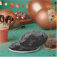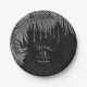 Opt for an Old Hollywood glam look by using the pieces in this wedding suite as shown, with jewels cascading off the diamond-encrusted palm leaves or delete the jewel layers for a slightly more conservative look. This set features leaves in shimmering silver against a dark charcoal, textured background. The wedding paper plate shown here has a border of sparkling leaves, a personal 'Thank You' message and the bride and groom's names and wedding date. Easily enter your details using the provided template. View the collection link on this page to see all of the matching items in this beautiful set or search ID830 to see additional colour options for this design.