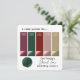 Get your colour palette swatch cards to help with planning and coordinating your wedding details, decorations, and stationery. Give them out to the wedding party, bridesmaids, or wedding planner!