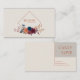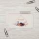 Define your brand with dramatic color and high-end contrast using this captivating business card. The design is centered on a light, creamy ivory background, which beautifully showcases the rich, autumnal jewel-toned floral cluster below. This lush arrangement features striking blooms in deep burgundy, dusty coral pink, and moody navy blue, accented by dark blue and burnt orange sprigs. The entire floral composition anchors a thin copper or rose gold diamond frame that provides a sharp, minimalist geometric accent for your key information. The aesthetic perfectly blends romantic, deep-toned florals with modern, clean lines, resulting in a unique and sophisticated brand statement. This business card is ideally suited for a high-end event stylist specializing in moody or bohemian celebrations, a boutique candle maker whose products evoke complex, autumnal scents, or a modern interior designer who favors deep, jewel-toned color palettes. It would also perfectly suit a floral designer known for rich, high-contrast arrangements, or a wedding stationer promoting an exclusive autumn collection. The card's captivating blend of dark florals and geometric framing ensures it is versatile for any solemn ceremony, corporate announcement, or refined birthday announcement.