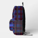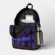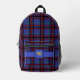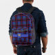 A rich sapphire blue base is crisscrossed by bands of deep black, ruby red, and emerald green in this jewel-toned plaid that combines trendy colours in a classic and cosy pattern perfect for fall. Customise the initial on the front pouch of this backpack with your own monogram to make this accessory uniquely yours.