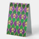 jewellery, background on Mardi Gras of purple and green rhombus, decorated gold lilies.