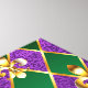 jewellery, background on Mardi Gras of purple and green rhombus, decorated gold lilies.