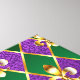jewellery, background on Mardi Gras of purple and green rhombus, decorated gold lilies.