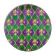 jewellery, background on Mardi Gras of purple and green rhombus, decorated gold lilies.