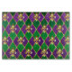 jewellery, background on Mardi Gras of purple and green rhombus, decorated gold lilies.