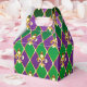 jewellery, background on Mardi Gras of purple and green rhombus, decorated gold lilies.