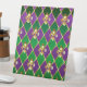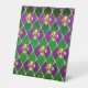 jewellery, background on Mardi Gras of purple and green rhombus, decorated gold lilies.