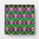 jewellery, background on Mardi Gras of purple and green rhombus, decorated gold lilies.