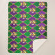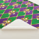 jewellery, background on Mardi Gras of purple and green rhombus, decorated gold lilies.