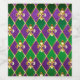 jewellery, background on Mardi Gras of purple and green rhombus, decorated gold lilies.
