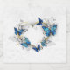 Jewelled, golden heart with blue and white realistic butterflies morpho. Morpho. Design with blue butterflies morpho.