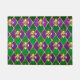 jewelry, background on Mardi Gras of purple and green rhombus, decorated gold lilies.
