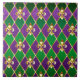 jewelry, background on Mardi Gras of purple and green rhombus, decorated gold lilies.