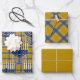 From my new Jewish Collection coming into stores now...MENORAH PLAID GOLD. A large silver and blue detailed 9 branch menorah design on an all-over background plaid pattern. All of the candles appear lit. The plaid pattern is gold, blue & white. You get 3 sheets of gift wrapping sheets. One with the menorah on plaid. A coordinating plaid and solid. This design is available in assorted background plaids and solids. Look for this design and coordinating pieces among my stores slowly coming in now.