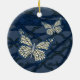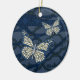 Patterns inspired by traditional Jewish mosaics and designs decorate the wings, body, and antennae of this monarch butterfly. "Peace" written in Aramaic script sits in the spots on the wings.