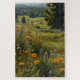A jigsaw puzzle showing a meadow of wildflowers with trees and rolling hills in the distance
