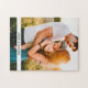 Personalized single photo edge print and text on white jigsaw puzzle. Great for family reunions, get togethers and birthdays.