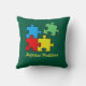 Jigsaw Puzzle Pieces Throw Pillow with customisable text and background colour.