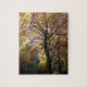 A jigsaw puzzle with beech trees in Autumn, from a photograph by Judy Adamson.