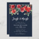 This design features winter watercolor floral detail and navy blue colour. Christmas party invitation.