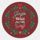 An Elegant and Modern Vintage Christmas Stickers features a snowy background, snowflakes, sleigh bells, ribbons, ornamental flourished lettering, and mistletoe botanical garland theme to represent the best of the holidays. It is inspired by the Christmas songs of Christmas past of the lyrics “Jingle All the Way” and is also a great way of expressing Holiday Cheer for those you care. Created with one-of-a-kind designed lettering and illustration for those who just love Unique and Novelty Styles! Designed by Katrina Sutton.