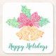 This colourful Jingle Bells design features golden bells with a bright pink bow with a backdrop of holly. Originally hand painted in watercolor, the unique floral mosaic pattern in bright holiday colours sets the scene for a festive holiday party