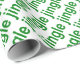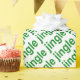 This merry wrapping paper will make all your holiday gifts even more fun! The word "jingle" appears repeatedly in green over a white background.