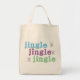 A unique and simple holiday design on holiday greeting cards, mousepads, holiday tote bags, T-shirts, and more with blue, green, and lavender text and snowflakes that reads "Jingle Jingle Jingle"!