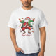 Image of a jolly, happy Santa Claus, his cheeks rosy from the cold, his eyes twinkling with mirth. He is dancing, his movements full of joy and merriment, his laughter echoing in the crisp winter air.