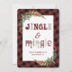 Elegant trendy buffalo plaid cheerful Jingle & Mingle Christmas sock holiday party corporate invitation design.